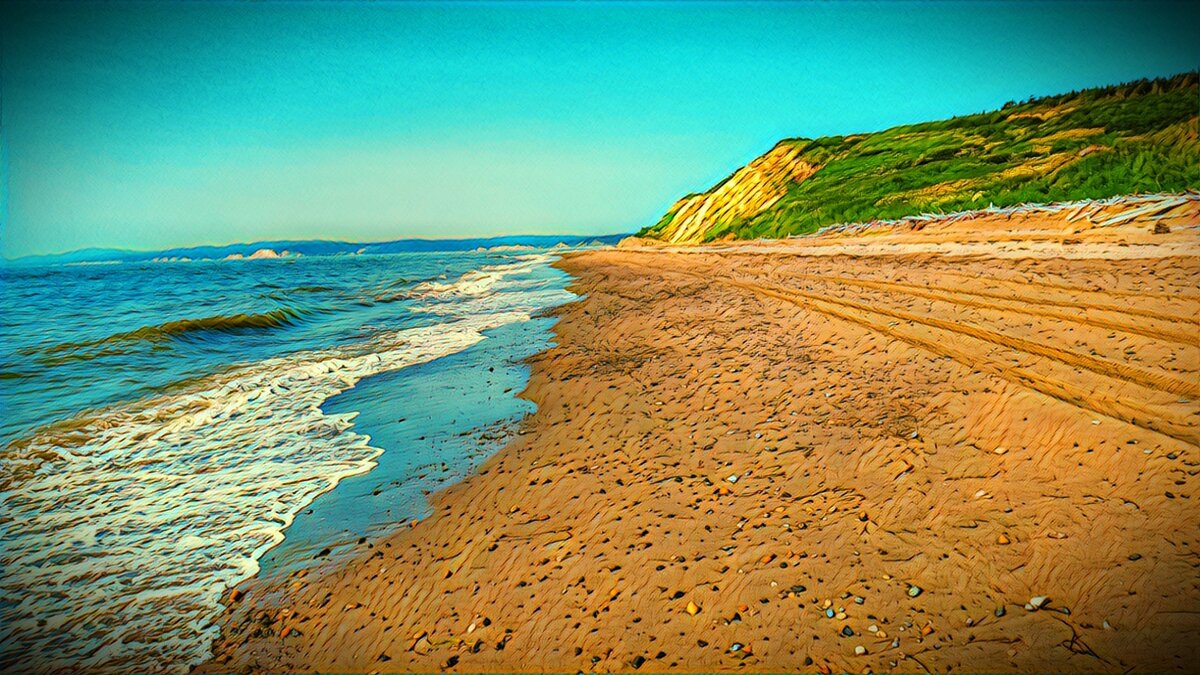 Я надел рюкзак и пошел вдоль побережья на север. Шел я по самой кромке берега. Песок был твердый и несмотря на 22 килограммовый рюкзак, идти было не слишком сложно. Настроение заметно улучшилось, берег хорошо просматривался и от страха медведей ни осталось и следа. Через каждые несколько километров стояли машины с отдыхающими, либо рыбаками, недалеко от побережья плавали рыбацкие лодки и сетями ловили горбушу.