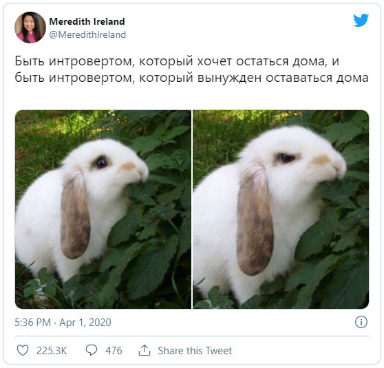 😵 Мы живём в безумные времена. Правительство сказало всем нам стать интровертами: оставаться дома, избегать контакта с людьми в общественных местах и, ни в коем случае, НИКАКИХ вечеринок. Интроверты находят странное утешение в социальном дистанцировании. Иногда они вздыхают от облегчения, когда видят пустые места в календаре от социальных встреч. С другой стороны, интроверты убиты горем за людей, которые заболевают и теряют работу. Итак, чтобы увидеть эмоциональные американские горки интровертов, я представляю вам лучшие твиты, которые показывают противоречащие эмоции интровертов. 🐇 1. Есть разница. БОЛЬШАЯ 👨🦯 2. Признаю, дополнительное личное пространство в общественных местах не помешало бы 😵 3. Или типа того... 4. О, это просто: книги 📚, дневной сон 💤, игры 🎮 ... (интроверты, продолжите в комментариях) 😏 5. К этому времени интроверты готовились всю свою жизнь 🤷 6. Интроверты не могут проводить время в одиночестве, пока дома постоянно кто-то есть 😎 7. Интроверты дистан