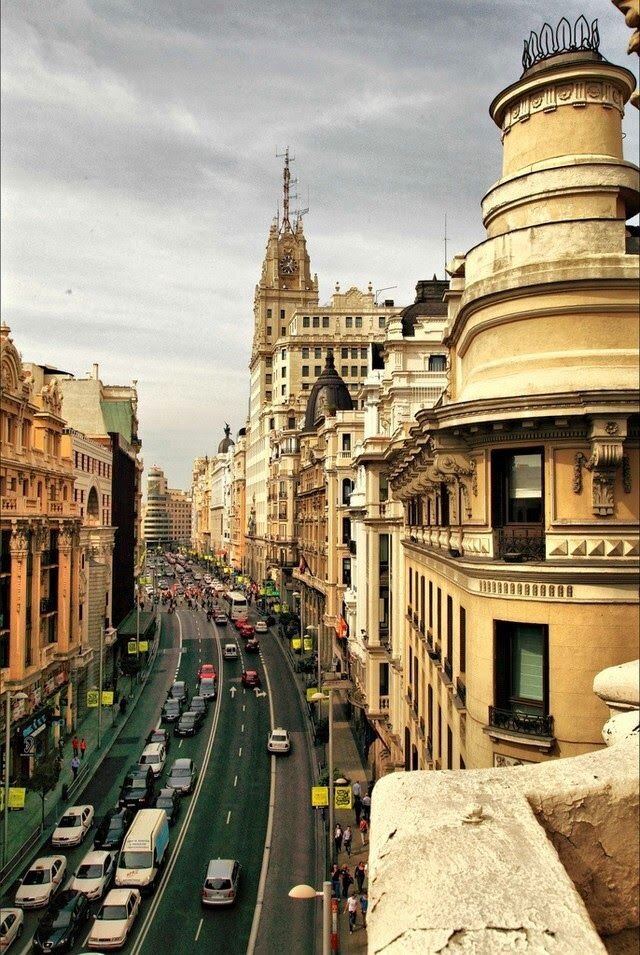Одно из наиболее интересных зданий, расположенных вдоль Гран-Виа — потрясающий французский Метрополис, построенный в 1905 году. Крылатая статуя победы на вершине купола была установлена в 1975 году и лучше всего видна с Калле де Алькала или Плаза де ла Сибелес. Вечером при искусственном освещении она особенно великолепна.