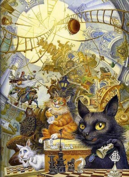Необычные сказочные кошачьи иллюстрации питерских художников О. Попугаевой и Д. Непомнящего
