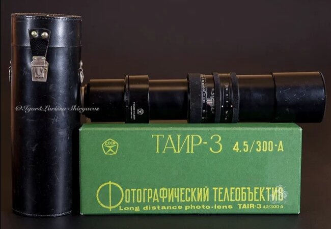 Фотографический объектив Таир-3 4.5/300-А, СССР, выпускался Красногорским механическим заводом. В 1941 году был принят к разработке фотообъектив, предназначенный для фотографирования отдаленных объектов в условиях низкой освещенности. Проще говоря, объектив с высокой светосилой. Задание советского правительства было следующее: "создание наземной аппаратуры для фоторегистрации весьма удалённых объектов в условиях пониженной освещённости и сумерках". Учитывая, что это был 1941 год, можно почти точно утверждать, что изначально Таир-3 4.5/300 планировалось применять в военных целях. Проблема заключалась еще и в том, что далеко не всё можно было рассчитать теоретически, понадобились длительные эксперименты и пробные Результат оказался восхитителен. Фотографический объектив Таир-3 4.5/300 впоследствии получил высшую награду на всемирной выставке в Брюсселе и надолго стал легендой в советской и зарубежной фотографии. В разных модификациях он использовался с малоформатными и среднеформатными