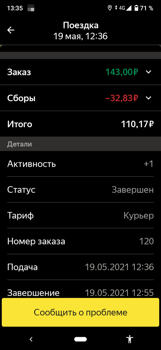 Доделал дела по городу и решил поглядеть, что творится в таксе. Только закрыл и тут же выпадает следующий заказ. Первый и второй рассчитались наличкой. И вот тут у меня вопрос. Я получается остался должен агрегатору. Так как наличка, то у меня на руках. И комиссию забрать, не с чего. Кто знает если я больше не выйду в линию, что будет с комиссией, которую я должен? Подачи типа ближняя и дальняя. Считаем пробег. С учетом подач по приложению 21,5 км. Хотя забив адреса по карте. получилось 20 км. 21,5*0,07=1,51 литра. *46,75= 70,59 руб. на топливо +7,06 руб амортизация. Итого 206,33 - 70,59-7,06=128,68 рубля за час работы. Вот так вот из за отсутствия термокороба комиссия стала 23%, а не 17% как раньше. При чем возил я отнюдь не продукты.На первом заказе цветы, на втором подарок в упаковке. Зачем тут термокороб? Подписывайтесь буду делиться историями с заказов. Если будете регистрироваться в такси, можете воспользоваться кодом 581волк8 или FS7L8G - это промокод на