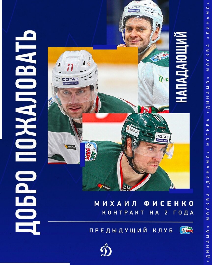 Выпускник хоккейной школы московского «Динамо» возвращается в стан бело-голубых Михаил Фисенко родился в Магнитогорске, но большую часть времени занимался хоккеем в динамовской академии. Форвард начал свою карьеру во второй команде московского «Динамо». До основания Молодежной хоккейной лиги он играл за «Динамо-2» в течение трех лет. На драфте CHL 2008 года был выбран клубом «Ванкувер Джайэнтз» под общим 51-м номером. Сезон 2009/2010 Фисенко провел в Западной хоккейной лиге в составе «Ванкувера». После не слишком удачного сезона за «Джайэнтз» он перебрался «Калгари Хитмен», где отметился результативной передачей в первом же матче. В сезоне 2009/2010 он выиграл с «Калгари» Кубок Эда Чиновета как чемпион WHL. Также Фисенко получил право побороться за Мемориальный кубок. Но «Хитмен» в итоге дошли лишь до полуфинала турнира. Перед сезоном 2011/2012 Фисенко вернулся в Россию и подписал контракт с новокузнецким «Металлургом». По ходу сезона хоккеист отправлялся играть в команду МХЛ «Кузнецки