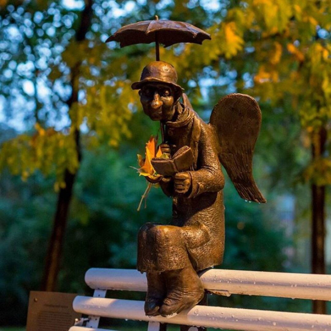 В Петербурге большое количество ангелов всех видов и родов. Сегодня вспомним четыре интересных представителя. Петербургский ангел Памятник является собирательным образом пожилых людей Ленинграда, обладающих особенной душевной культурой и интеллигентностью. В руках героя - зонтик, один из неофициальных символов города. И книга, символизирующая знания стариков города. Расположен ангел в парке перед Молодежным театром на Фонтанке. Адрес: Измайловский сад, наб. Фонтанки, 114 Фонтан "Колодец ангелов" Место для всех жаждущих в прямом и переносном смысле. Смотреть на ангелов не только просто приятно, но в жаркий день из их ручек можно умыться студеной водой. Старожилы говорят, что вода в фонтане ангелов исцеляет от легких недугов. Если вы себя неважно чувствуете или у вас плохое настроение, умойтесь водой из фонтана и все как рукой снимет. Адрес: Александровский парк. Ангел на крыше консульства Литвы Забавная фигурка сидит на скате крыши. Она уникальна тем, что лицо ангела - это лицо реал