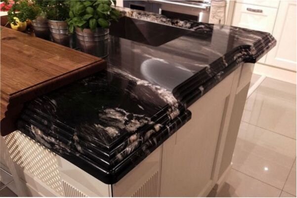 Столешницы из гранита считались тяжелыми и дорогими в повседневном уходе. В настоящее время они воспринимаются как элегантные и добавляют интерьеру роскоши. Каменные кухонные столешницы прочные, и их очарование неподвластно времени. Для сомневающихся - варианты из конгломерата, представляющего собой камень, но подвергнутого технологической обработке, благодаря которой меняются его свойства. Если говорить о гранитных столешницах, то это однозначно лучшее решение среди столешниц из натурального камня. Гранит обладает высокой устойчивостью к факторам, характерным для рабочей зоны кухни, то есть к контакту с водой и высокими температурами, он наименее чувствителен к проливам кислот или сильно окрашенных жидкостей и не выцветает от солнечного света. В этом отношении он значительно превосходит столешницы из мрамора или других драгоценных камней. Нет двух одинаковых гранитных столешниц . Каждый кусок гранита имеет уникальные особенности. Кроме того, существует также различие в ассортименте до
