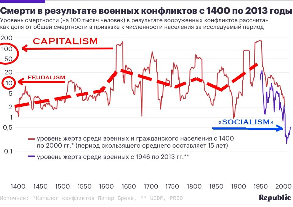 Именно такую картину нам рисуют школьные учебники истории, но вот незадача, по подсчетам норвежского института изучения мира и конфликтов (UCDP) получается все ровно наоборот