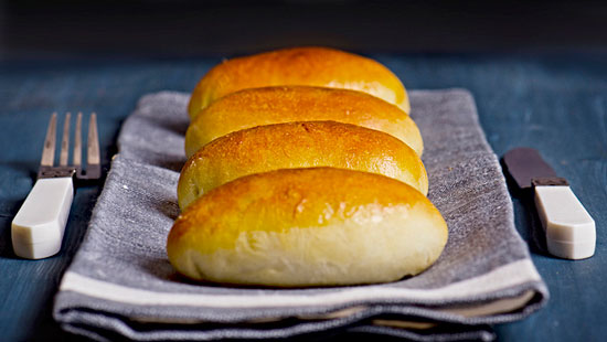 По прошествии времени, подошедшее тесто необходимо раскатать в колбаску и нарезать на равные куски для предполагаемых пирожков.