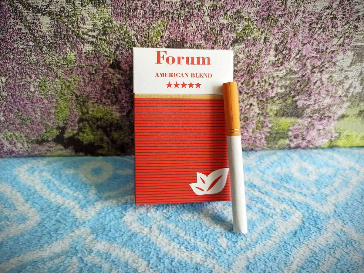 Всем доброго времени суток, друзья. Сегодня рассмотрим несколько интересных образцов из нелегального рынка. Контрабандные сигареты, которые стоят намного ниже акцизных - тема интересная и, можно сказать, вынужденная для многих. Ведь сейчас происходит всë так, что все сигареты дорожают всë больше и больше. А самое главное - их качество вместе с ценой не улучшается. С 1 апреля 2021 года минимальная цена вообще стала составлять 108 рублей. А контрабанду это не как не касается, ведь она не регулируется акцизами. Что ж, рассмотрим первый образец. Forum American Blend Мне кажется, была когда-то такая марка далеко в прошлом на легальном рынке. Например, были в советское время сигареты Форум молдавского производства. Но марка именовалась на русском языке. Здесь же у нас стандартного размера пачка с прямыми углами, на ней ничего не выбито, всë идëт принтом. Мешку нам обещают "american blend", посмотрим, соответствует ли это действительности. На пачке имеются показатели, которые составляют: 10