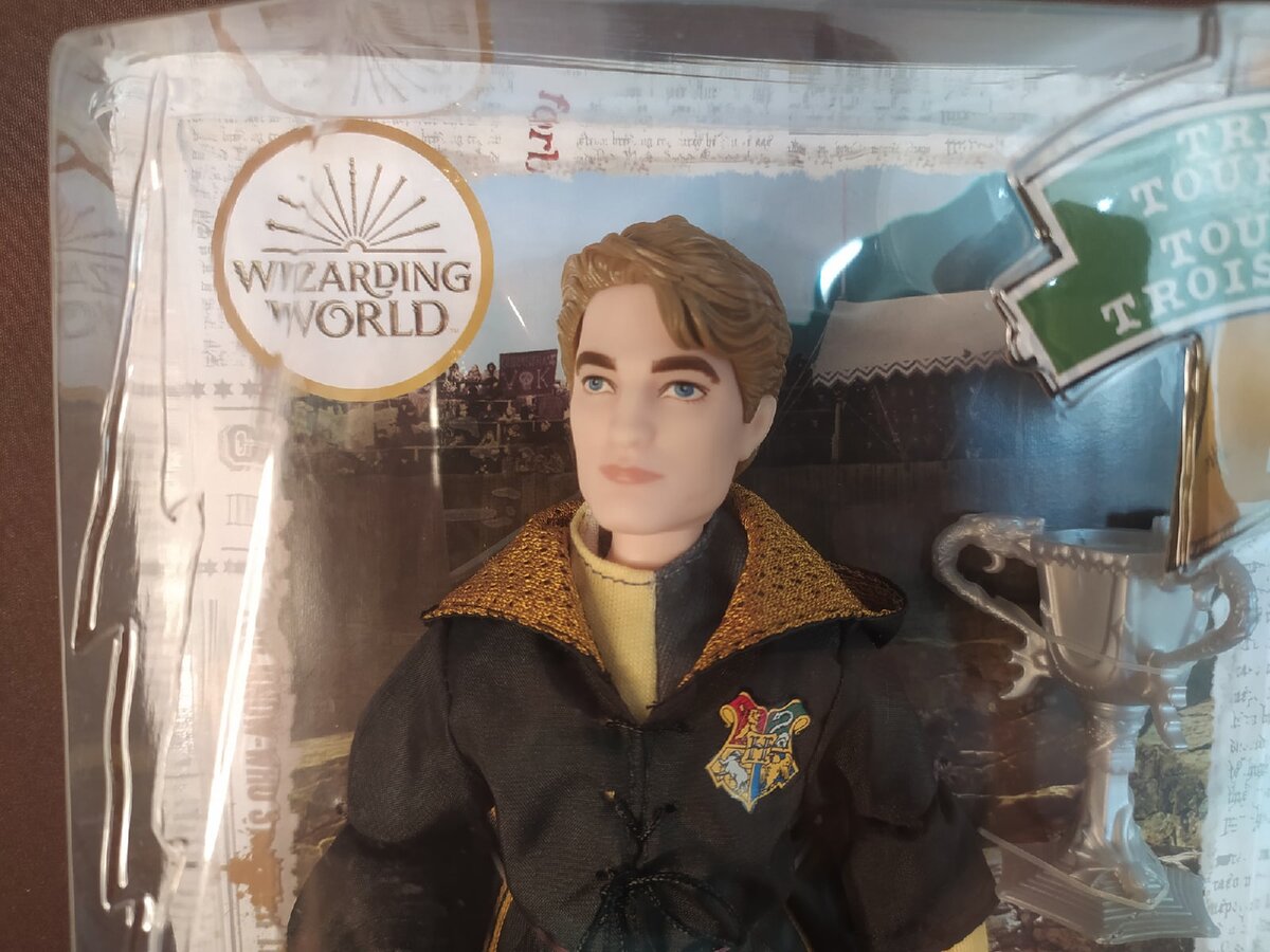 В моей коллекции по Гарри Поттеру не хватало трех персонажей — Седрика, Хагрида и Волдеморта. Как раз Седрик был заказан еще в декабре, но никак не мог до меня добраться. Приехал, и... не знаю зачем он мне. Никогда не любила ни персонажа, ни актера. Костюм оставила, а саму куклу хочу обменять на какого-нибудь парня из BTS. Рассмотрим его поподробней. Тело у Седрика стандартное для подростков из серии Гарри Поттер — заметно ниже взрослых, но с довольно крупной головой. Рон, Драко, Гарри и Седрик одинакового роста (ну да, если бы Маттел еще рост учитывал). Шарниры одночастные, в щиколотках отсутствуют. Выражение лица надменное, глаза голубые. Резиновая прическа приклеена к голове. Он был весь в тканевой пыли от одежды, потому я его помыла. Одежда в целом, на мой взгляд, слегка похуже, чем у кукол первой волны и бальной серии. Штаны из прочной жесткой ткани-плащевки, как у дешевых кенов, но лучше сшиты. Свитшот на липучке сзади, выглядит каким-то тусклым (не помню какой был в фильме)