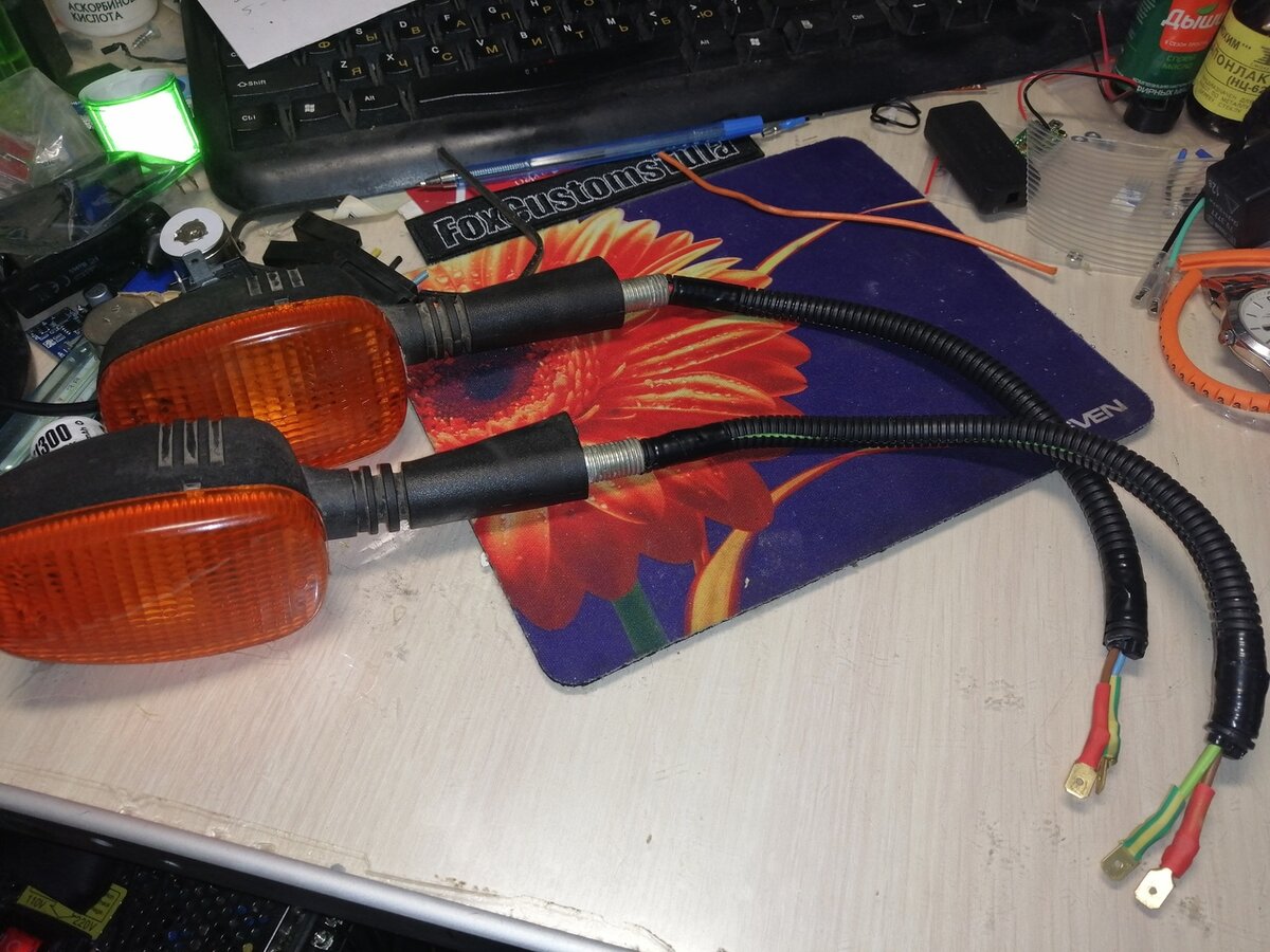 Доброго времени суток друзья! Ну вот пришло время навести порядок в проводах. На фото передние поворотники, провода которых я убрал в гофру, напаял ножевые штекеры (да, именно штекеры). На потребителе всегда штекеры, если что и отвалится, то не замкнет на массу. На следующем фото реле поворотов, та самая, заставляющая мигать поворотники. На ней на минусовой провод припаял кольцевую клемму под болт М6 . Плюсой опять ножевой штекер, в вот управляющий гнездо ножевое, т. к. на управляющий подаётся плюсовой сигнал, и идёт он на левый пульт. На фото ниже левый пульт. Состав пульта стандартный: рычаг поворотников, рычаг ближнего-дальнего света, кнопка гудка. На отходящие провода напаял, так же ножевые клеммы, и надел кабельные маркеры для быстрого поиска нужного провода. Вы скажите: "разъём на разъёме нагородил". Я Вам отвечу что это пока временное явление здесь, пока все не поставлю на место и не протестирую. Хотя нет ничего постоянной, чем временное. Спасибо за внимание и до новых статей!