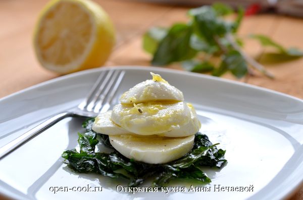 Я редко готовлю по рецептам из журналов, но вот этот запомнился. Черт его знает, почему. Название оригинальное из журнала “Просто. Вкусно” № 07+08/13. Мне показалось, что эта закуска прекрасно подойдет к рыбе Дорада. Если я не права, дайте знать. Закуска очень проста в приготовлении и красива. Такая летняя-летняя. Я готовила на одну порцию, но кол-во продуктов даю как в журнале (хороший, кстати, журнал). На 4 порции: Первое, что нужно сделать, это вымыть лимоны горячей водой, вытереть насухо, натереть цедру на мелкой терке и выжать из них сок. Далее берем миску и смешиваем в ней 5 ст.ложек лимонного сока, лимонную цедру, сахар, перец и соль. Я взбивала вилкой, но при больших объемах, наверное, можно и венчиком: взбивая, добавляем 4 ст.л. оливкового масла (перец у меня был свежемолотый из мельницы ручной, отчего я уже при сортировке фотографий обнаружила большие такие хлопья, которые портили весь вид). Моцареллу нарезаем кружочками и отправляем в миску с маслом, аккуратно перемешиваем,