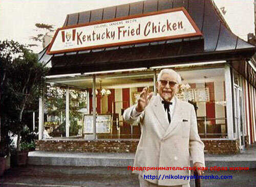 Гарланд Дэвид Сандерс с английского Harland David Sanders. Но более известен под прозвищем Полковник Сандерс с английского Colonel Sanders. Годы жизни полковника Сандерса: 9 сентября 1890 год — 16 декабря 1980 год. Это и есть основатель сети КФС ресторанов быстрого питания Kentucky Fried Chicken. Переводится, как Жареный цыплёнок из Кентукки. Он первым превратил обжарку цыплят в многомиллионный бизнес в 1952 году. Его фирменным рецептом являются куски жареной в кляре курицы, приправленной смесью ароматических трав и специй. Его стилизованный портрет традиционно изображается на всех ресторанах его сети и на фирменных упаковках. На деле, полковник Сандерс никогда не был армейским офицером. Звание «полковник» это почётный титул, присуждаемый ежегодно губернатором штата за выдающиеся заслуги в общественной жизни штата. Детство полковника Сандерса Примечательно, что полковник Сандерс закончил всего шесть классов. А своих первых кур пожарил еще в шесть лет. Тем самым доказывая, что наличи