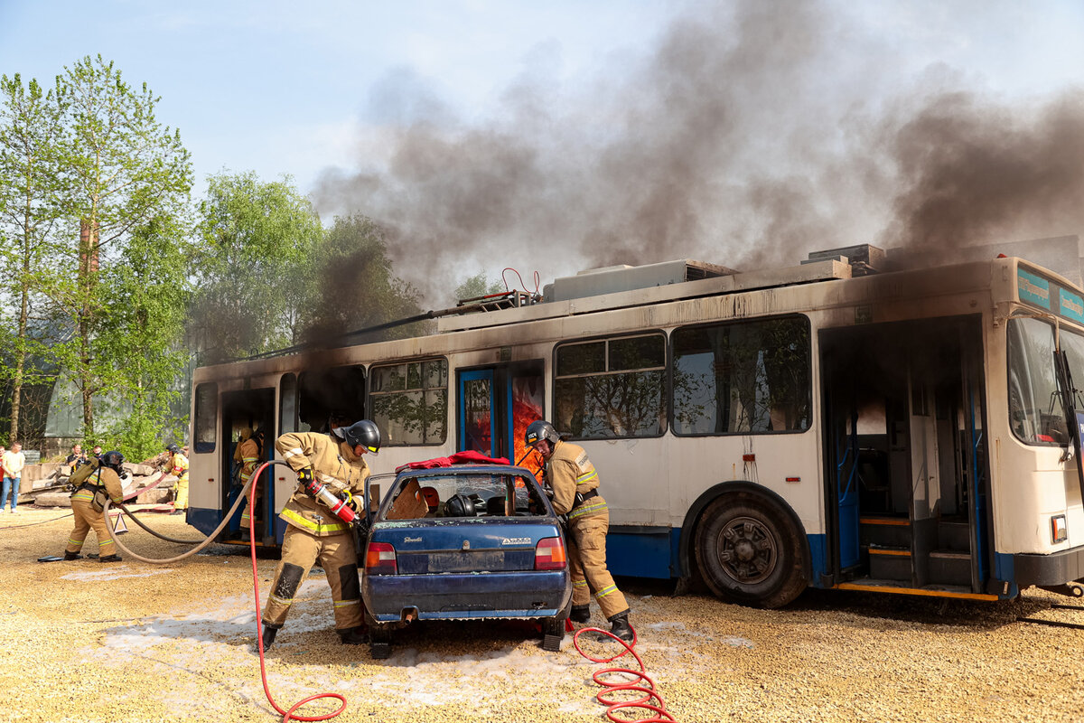 Спасение из горящего троллейбуса: Горэлектротранс и университет ГПС МЧС России отработали действия при ЧС