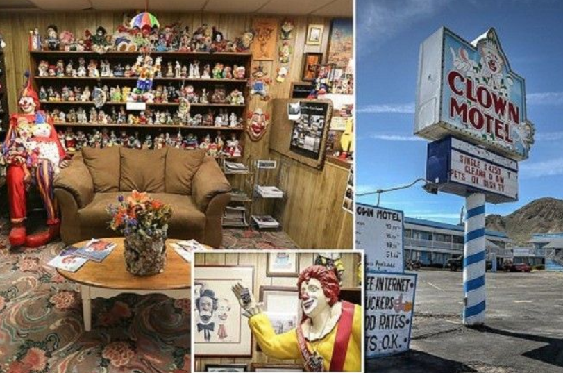 ЖУТКОВАТЫЙ МОТЕЛЬ КЛОУНОВ В НЕВАДЕ Город Тонопа в Неваде знаменит огромным поголовьем черных котов и старинным кладбищем на 300 могил. Но, как будто этого мало, на объездном шоссе на окраине города построили мотель «Клоуны» – наверное, самый страшный мотель в США! Стивен Кинг однажды сказал: «Никто не захочет встретить клоуна в полночь». Но, проезжая через Неваду, вы, возможно, обречете себя на это, если ваш путь проходит мимо мотеля «Клоуны» в Тонопе, расположенного недалеко от старого городского кладбища. Многие считают его самым жутким мотелем в США. Постояльценв здесь встречают сотни клоунов с выбеленными лицами и зловещими ухмылками, и даже привыкшие ко всему дальнобойщики порой просят закрыть клоунские портреты на дверях и в комнатах. Вход в мотель выглядит вполне мило и миролюбиво, и маленькая картинка с клоуном не портит впечатления. Но внутри все иначе. На ресепшене гостей встречают десятки клоунов-кукол с мертвыми глазами. Кажется, они прожигают стеклянными глазами всех, ожид