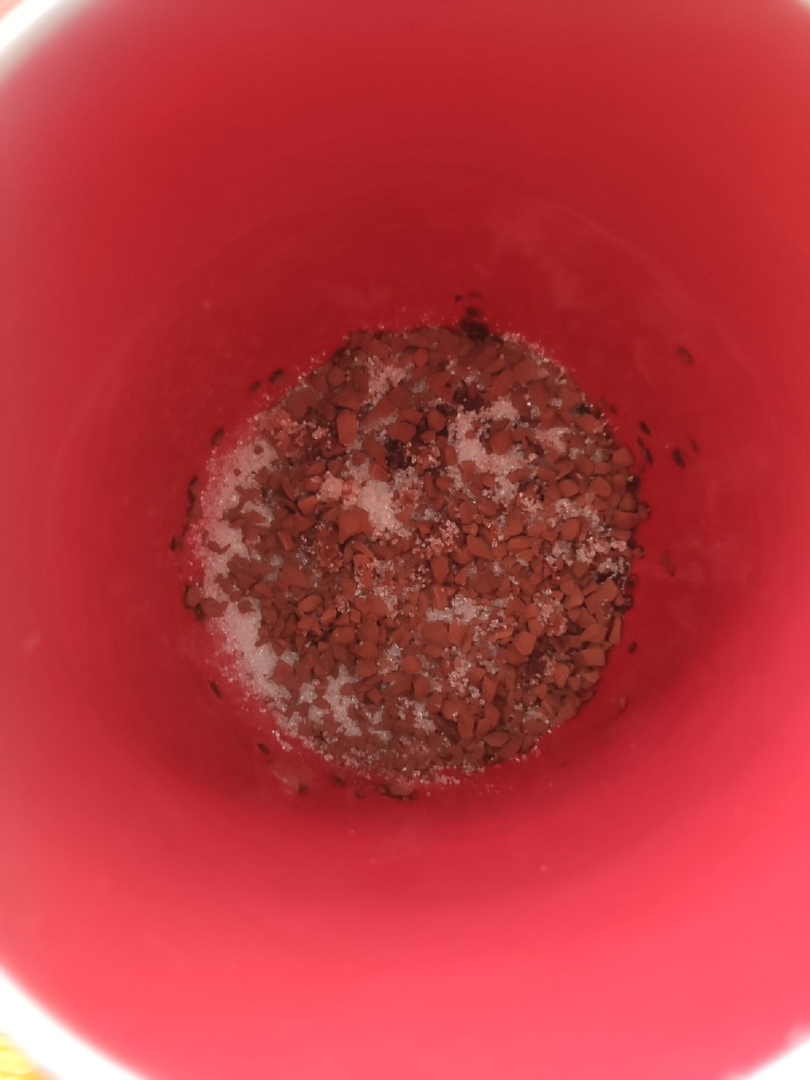 Быстрорастворимый кофе имеет ряд преимуществ и недостатков. К первым можно отнести высокую доступность и простоту в изготовлении. Далеко не каждый согласится каждое утро молоть кофейные зёрна, а потом варить их в турке, ведь это отнимает бесценное время. Главным недостатком быстрорастворимого кофе является его высокая кислотность, особенно, если покупать одноразовые порции в пакетиках. Поэтому настоятельно рекомендую покупать кофе в стеклянных баночках, где оно имеет вид гранул, а не порошка. Но даже так, многие люди жалуются на его кислый вкус и неприятный запах. Сейчас я расскажу, до чего смогли дойти пытливые умы в попытках повысить вкусовые качества быстрорастворимого кофе. 1. Прежде всего насыпьте в кружку 1-2 ложки кофе и добавьте равное количество сахара. Лично я предпочитаю крепкий кофе без сахара, так что можно положить и 3 ложки. ОБЯЗАТЕЛЬ РАЗМЕШАЙТЕ все содержимое, чтобы получилась следующая картина: 2. Поставьте чайник, но следите, чтобы вода ни в коем случае не начала