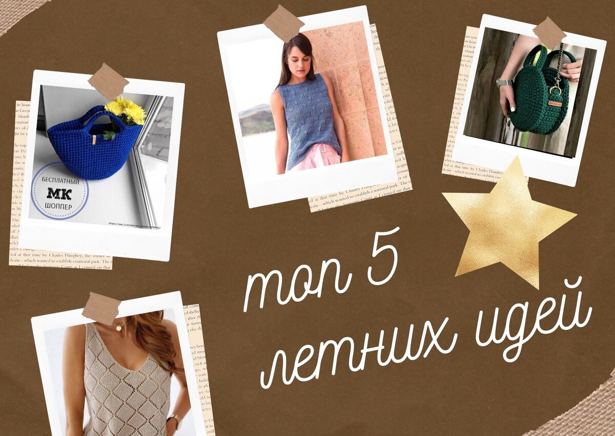 Лето на носу! Обновки готовы? Что мы любим вязать к лету? легкие кофточки, кардиганы, купальники, туники майки и сумки! Кстати, лето - самое подходящее время для вязаных аксессуаров. Если вы еще не связали себе сумочку из трикотажной или какой-нибудь другой пряжи, то уже пора. Предлагаю вам 5 простейших крутых идей с сайта "Вяжем тут", что можно быстренько связать. 1. Сумка Лето - пора ярких красок. Самое время для классной, яркой сумки-шоппера. Вяжется крючком, просто и быстро, без замысловатостей. Мастер-класс по ссылке на сайте: https://vyazhemtut.ru/sumka-shopper-krjuchkom-master-klass/ 2. Крутой узор для летней майки Просто топчик! Такая майка узором "Ромбы" должна быть у каждого! Красивый, ажурный, легкий - самое то для знойного лета. Заходите в гости! Вяжем тут на YouTube , Сайт " Вяжем Тут " , группа в ВКонтакте, группа "Одноклассники" Выбираем легкую хлопковую или льняную нить и вперед! Спинку можно связать просто лицевой гладью, оставив узор только спереди. https://vyazhemtut