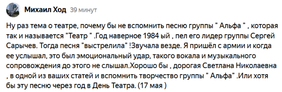 Почему бы не вспомнить песню группы «Альфа» в День театра