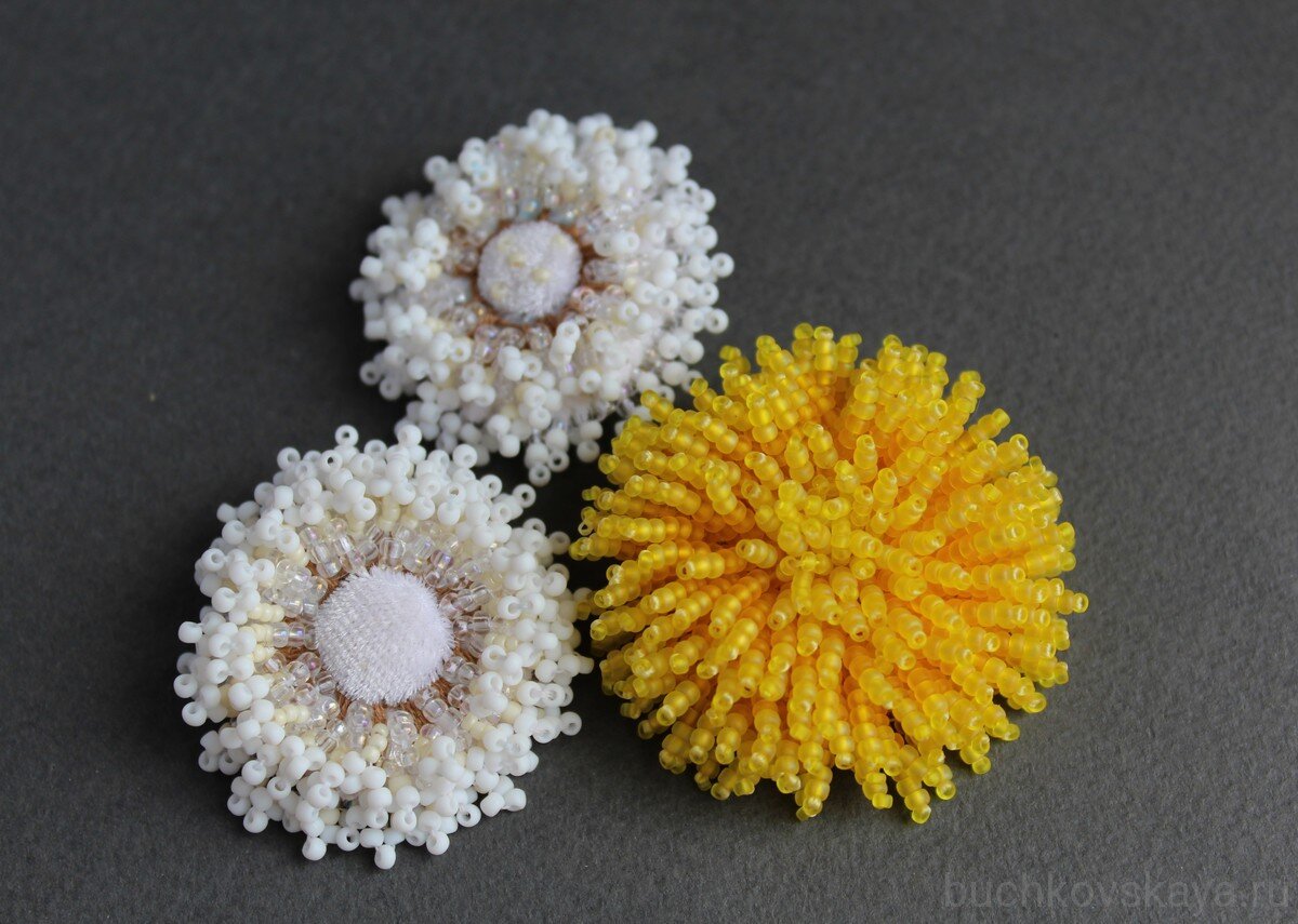 ...ну или почти внезапно) Добрый день, дорогие подписчики и гости! Одуванчики. Цветы детства! В девчачьих играх эти "солнышки" играли весьма заметную роль, помните? Их полураспустившиеся бутоны становились юбочками простеньких кукол, которых девчонки мастерили из веточек. Из листьев "варили кашу" для кукол. Млечным соком (и в это свято верили!!)) нужно быстренько помазать руки, если подержали жабу - чтоб бородавок не было)) Одуванчики- пушистики - это вообще "оракул"! Вот хочешь узнать, какой у тебя будет муж? Берёшь в руки стебелёк с пушистиком и со всей дури силы дуешь на него! Если все парашютики с семенами улетели - лысый будет муж)) А ещё те же пушистики были как монетка - "орёл" или "решка"? Сколько важных решений принималось таким образом!! А венки! Кто их не плёл?! Вот вспомнились эти милые детские игры и приметы... и захотелось сделать пару брошек- одуванчиков