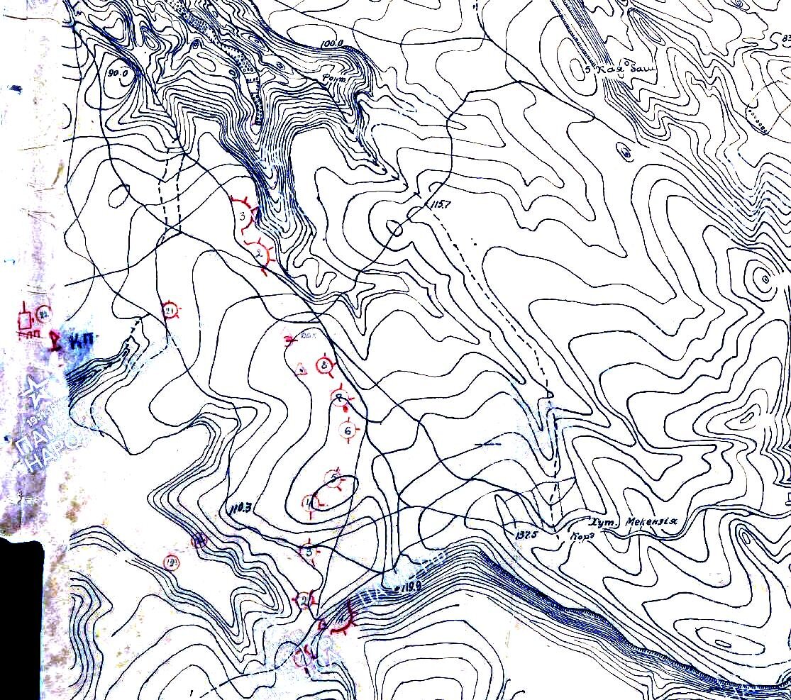 Обследуя укрепления Севастополя, мы столкнулись с достаточно интересными массивными бетонными дотами, некоторые из которых, имели сборную конструкцию из больших блоков. Они совершено нетипичны для Севастополя. Возникла легенда об их немецком происхождении. Но, нет, они не немецкие. Более того, доты эти занимало подразделение, совершившее подвиг еще во время отражения декабрьского штурма. Да, это тыловая линия «батальона Жигачева». Большинство дотов Мартынова оврага были построены в конце декабря 1941года, когда возникла реальная угроза прорыва противника по его отрогам. Достройка их велась и в январе 1942г. По воспоминаниям, полковник Кедринский был смертельно ранен в районе Мартынова оврага, как раз тогда когда он возвращался со строительства одного из этих дотов. Эти укрепления имеют весьма любопытную конструкцию. Они отлиты из бетона, или собраны из больших бетонных блоков, монтируемых с помощью крана или ручных талей (с треноги). Вес блоков такого дота от 800 кгдо тонны. Всего бы