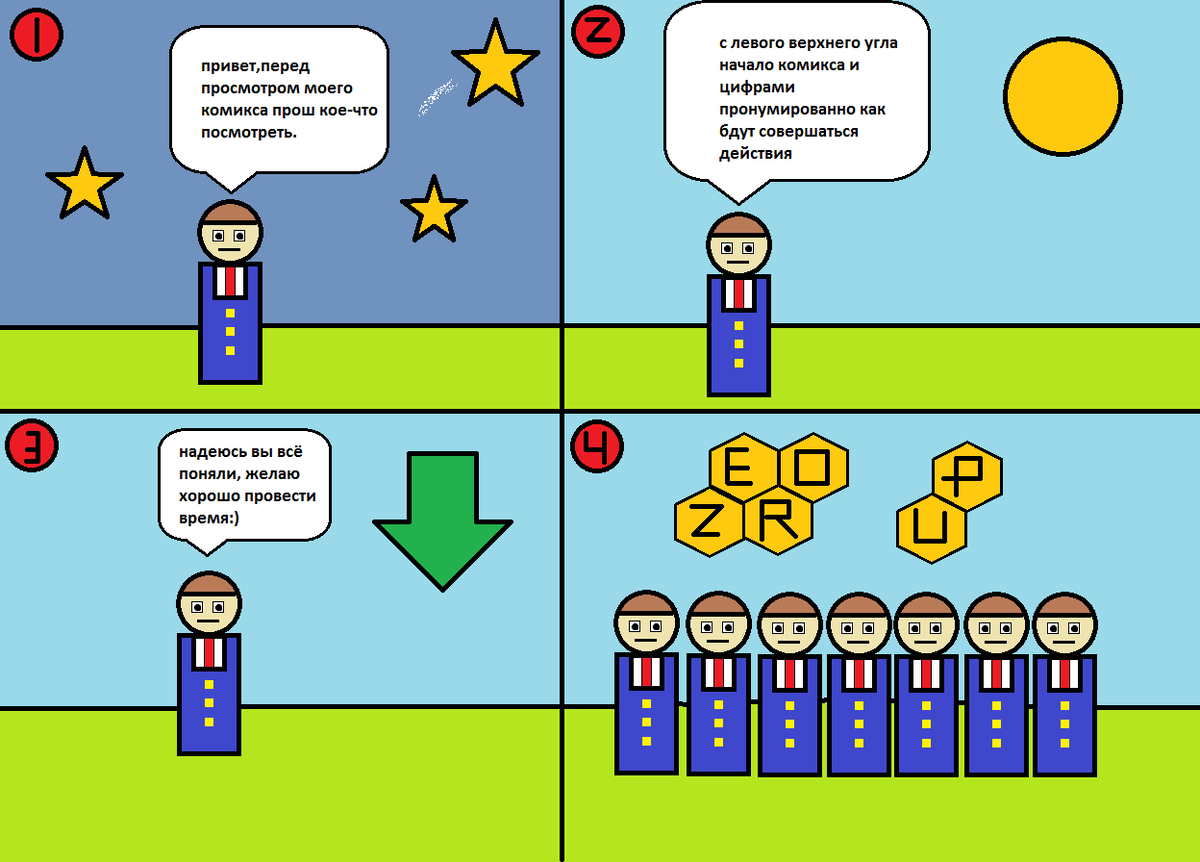 Привет я создал небольшой комикс в paint просто для того , чтобы был , так что не обращай внимания на отсутствие сюжета . если хочешь то можешь придумать его сам и отправить его в комментарии приятного чтения. спасибо за просмотр удачи и до новых встреч!