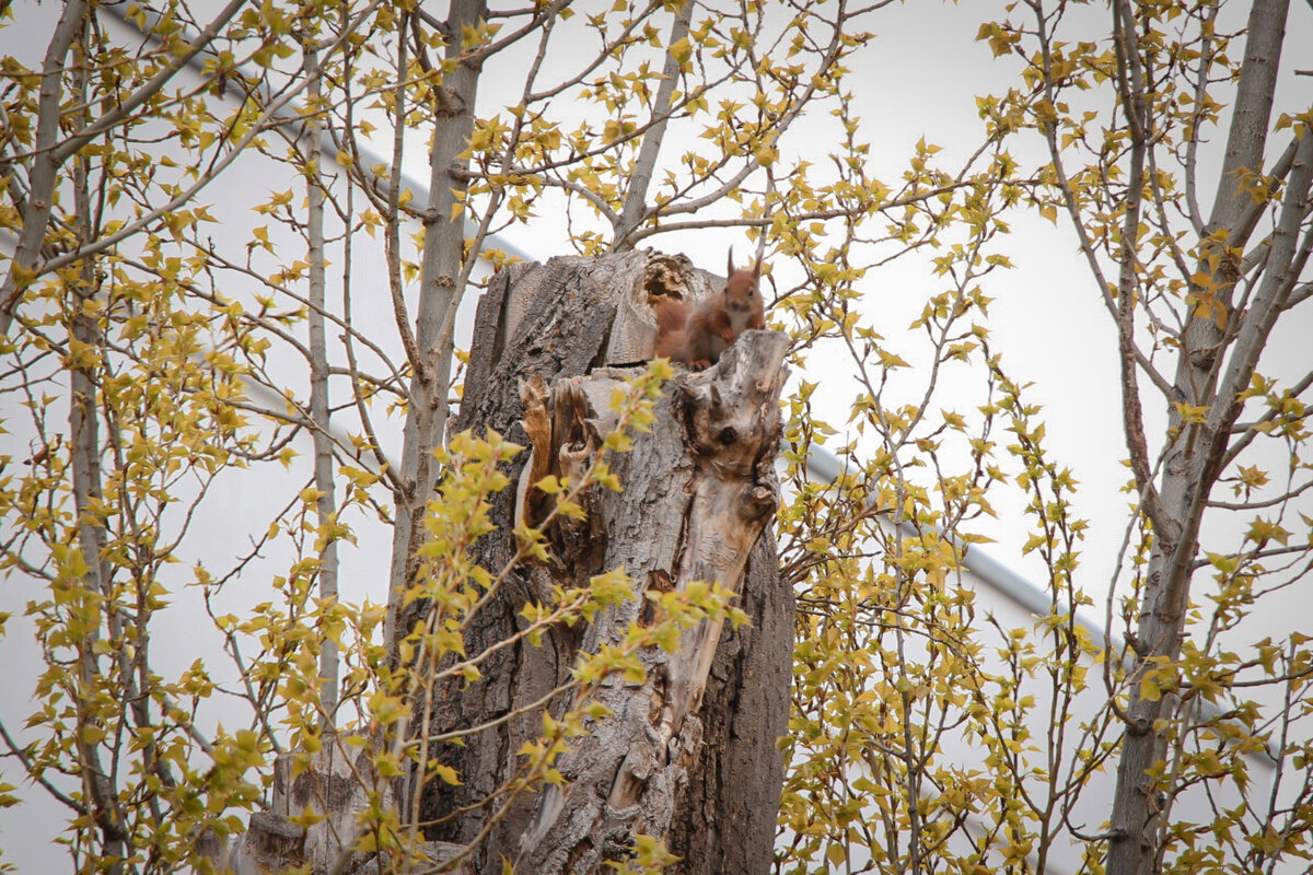 На нашем заднем дворе стоят три дерева, спиленные в верхушках, но довольно пышные по бокам ствола. Летом они преображаются в пушистые зеленые шары, и сквозь листву мало что можно углядеть. Зимой они стоят голые и невеселые. Зато весной, когда распускаются почки, на деревьях начинается тусовка, и ее видно во всей красе. Дело в том, что одно из деревьев облюбовала для себя белка, сделав из него комфортабельное жилище. Да что там – в беличий дом даже электричество проведено. У нас на заднем дворе стоит датчик движения. Белка лапой двиг – свет зажигается. Даже у меня не настолько комфортные условия. Мне, как и большинству смертных, приходится тыкаться в выключатель. Белка ведет активную социальную жизнь, и от этой активной социальной жизни у нее каждую весну появляются дети. Когда двое, когда трое. И дети эти, игнорируя все мыслимые и немыслимые правила беличьего поведения, носятся среди дня по веткам и сигают с дерева на дерево. Двое ладно… Трое ладно… Но похоже, этой весной бельчат у мам
