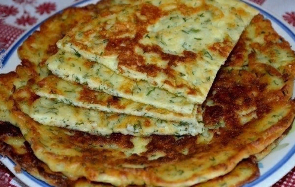 Воздушные лепешки Лепешки я готовлю раз в неделю обычно в субботу напекаю много и все уходят в улет. Ингредиенты: пачка творога, 100 г.твердого сыра, 1 молодой кабачок, 0,5 пучка укропа, 2 яйца, 200 мл.кефира, 350 г.муки, 1 ч.л.соды, 1 ст.л.растительного масла для жарки, Этот рецепт очень прост и не требует каких-то особенных кулинарных способностей. Также не отнимает много времени на готовку. А самым интересным является то, что сыр не только в начинке, но и в самом тесте! Приготовление: Тщательно промываем кабачок и укроп, даем время стечь воде и мелко рубим ножом на доске укроп.А кабачок протираем на терке (по отдельности) вместе с сыром, затем отжимаем из протертой массы кабачка сок. Творог разминаем вилкой в мисочке добавляем яйца, кефир, соду, протертую массу кабачка, сыр и рубленую зелень, солим, перчим по вкусу.Тщательно все перемешиваем чтобы не было комочков и начинаем постепенно подсыпать просеянную муку.Все замешиваем в густую массу дальше вымешиваем руками.Затем раскатыв