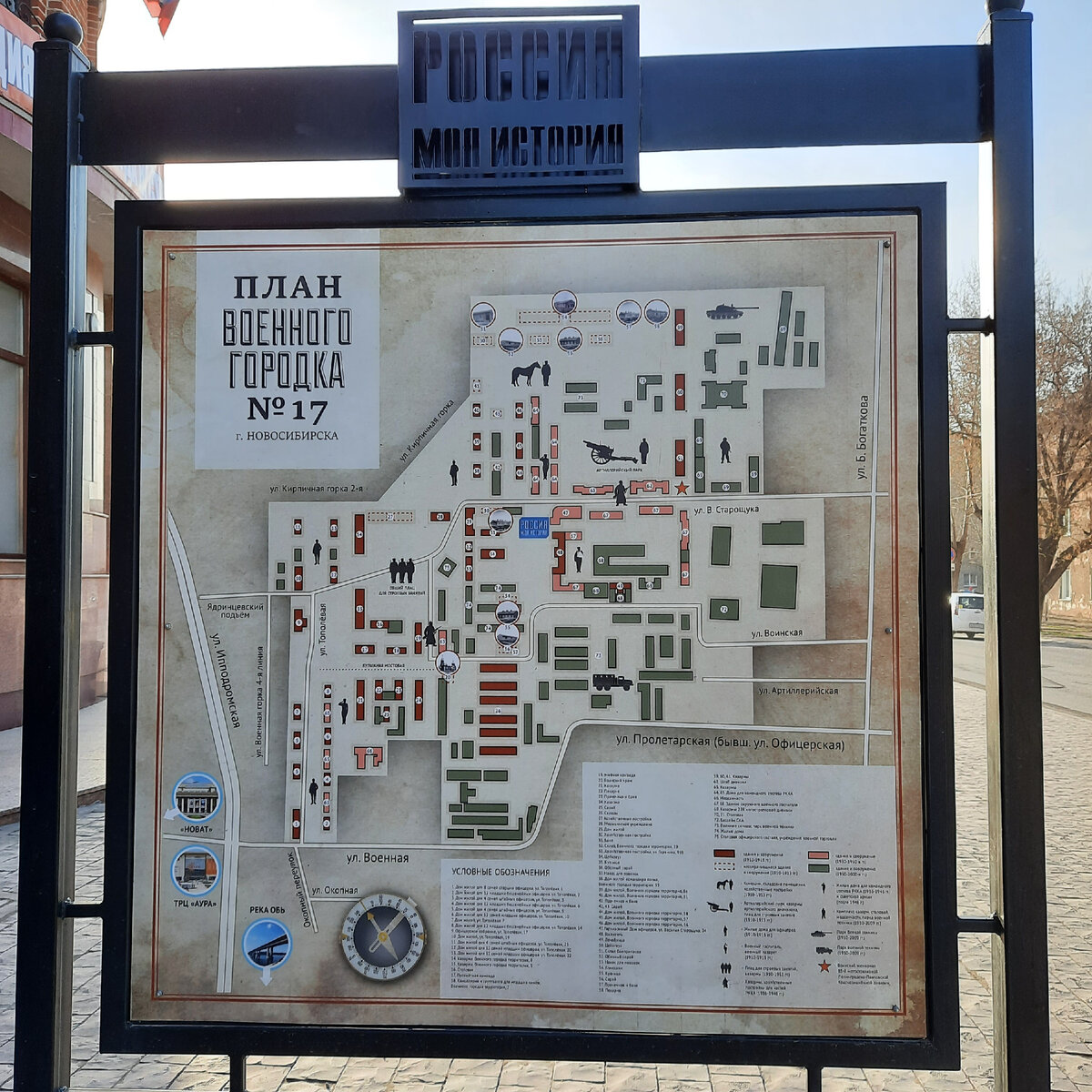 В начале мая, ещё до поездки в Томск, мы побывали в небольшой части огромного исторического комплекса. Здесь находятся 100-летние казармы из красного кирпича, соседствующие с постройками советского периода. Мы прогулялись по аллеям, вдоль которой расположены три казармы, три прекрасных здания, построенных в 1910–1913 годах на окраине молодого Ново-Николаевска. Напротив них пустырь, заросший бурьяном. Тут когда-то был плац. Рядом остатки воинского мемориала 85-й мотострелковой Ленинградско-Павловской Краснознамённой дивизии у подножия которого лишь старые венки. Несколько лет назад был подготовлен дизайн-проект развития этой территории, дабы усилить ее культурно-патриотическое значение. Он предполагал сохранение, восстановление исторических зданий и создания культурно-исторической зоны. Но пока эта территория находится в ведении Министерства обороны РФ. И на данный момент существует опасность продажи по частям, учитывая какой интерес к этому участку проявляют застройщики. На протя