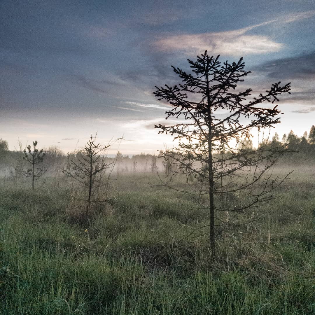 Банные истории, как обычно, затянулись. Когда мы вышли на крыльцо, стало понятно, что только-только наступил тёплый деревенский вечер. Один из тех немногих майских вечерочков, ради которых ждёшь и с удовольствием проживаешь весну. После недавнего дождя, пахло землёй, травой и лесом. В лужицах отражалась красота и свежесть неба. Капли дождя расселись и теперь яркими серёжками украшали каждое деревце и любой кустик, да траву. На горизонте догорало солнце, а на поле только-только зарождался густой туман. Было ощущение сказки и предвкушение прекрасного. Детский восторг обуял нами и не хотелось уходить...