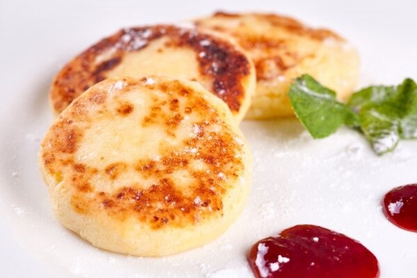 Свежий банан размять ступкой, всыпать к нему маложирный творог (1З0 г.), порошок из отрубей (20 г.), яичный белок и перемешать тесто до однородности. Дать разбухнуть (около 20 мин.) и постепенно всыпать муку грубого помола (не более З0 г.). Тесто не должно быть излишне вязким, скорее более жидким. Разделить готовое тесто на равные порции, сформировать шарики, а затем примять их. Полученные лепешки обжарить с каждой стороны до коричневатого цвета.Чтобы сырники не были излишне жирными от масла, перед употреблением стоит ненадолго поместить их на бумажные салфетки.