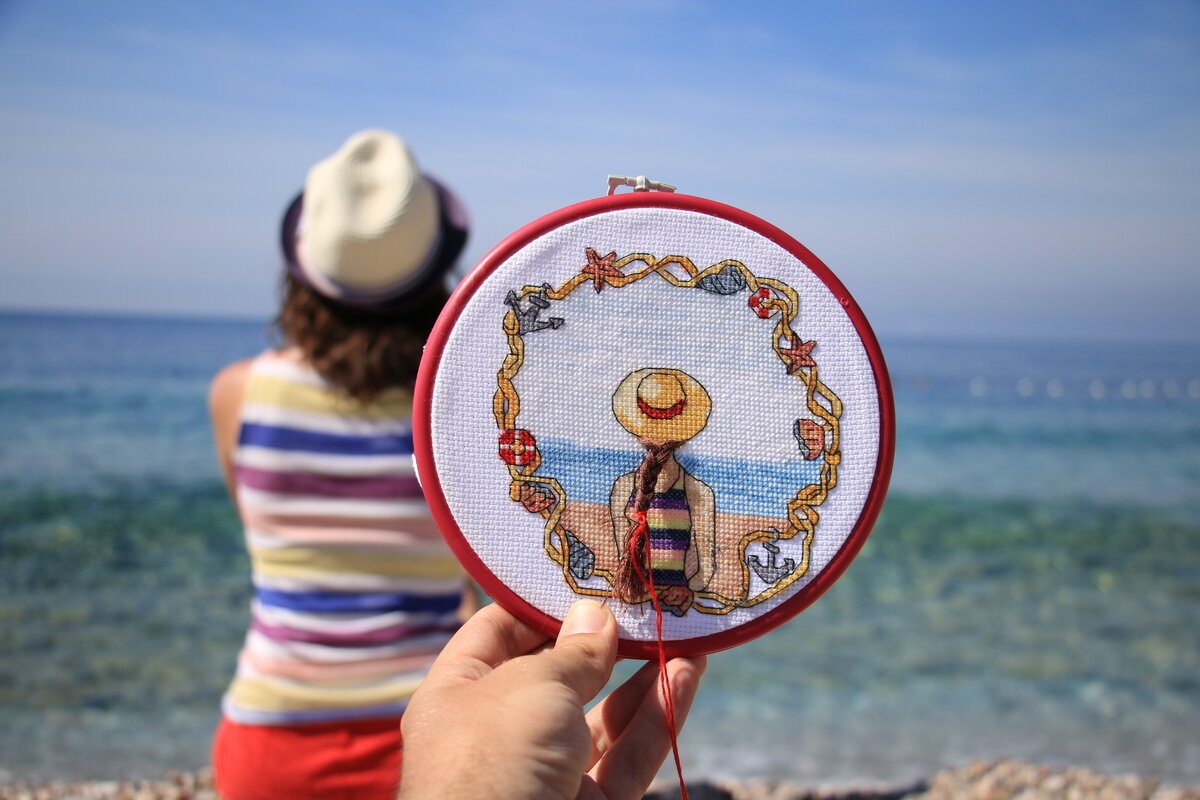 Всем доброе утро и хорошего дня! Ну что, в предверии лета я наконец должна поделиться своей самой яркой летней картиной, фотография которой вот уже полгода красуется на главной странице этого блога 😀 Встречайте! Этот набор я встретила случайно, как и многое, что происходит в интернете: мне порекомендовали один магазин в Москве, в котором можно купить нитки мулине определённое количество метров (чтобы не разоряться на покупку полных мотков). Магазин называется Нитка и в нём действительно оказалась такая возможность! Помню, я тогда сразу закупилась для вышивки моего Тоторо, но хотела поисследовать магазин ещё. В магазине много нестандартных наборов для вышивки, многие наборы продаются в тубусах, в которых потом можно хранить вышивки, чтобы они не мялись. И вот я увидела набор, который мне попадался в интернете, называется он "Это ты мечтаешь": Дизайн разработан самим магазином по иллюстрации Евгении Бахтигареевой: Дизайнеры из магазина Нитка придумали возможность девчонкам побаловаться