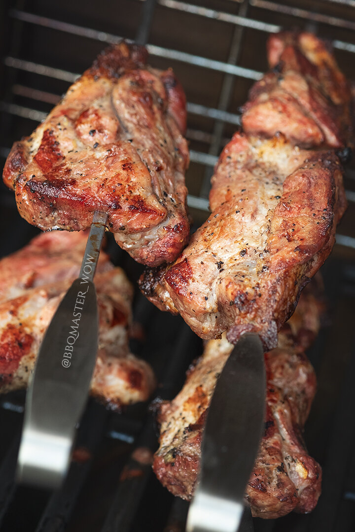 Привет! В эфире мастер пожрать с новым рецептом старым как мир. Ингредиенты: ▪️1 кг свиной шеи ▪️8 крупных головок репчатого лука ▪️2 ст.л. яблочного уксуса ▪️1.5 ч.л. соли ▪️1 ч.л. черного перца ▪️Свежая петрушка Подготовка: Лук порезать кольцами, добавить 1/2 ч.л.соли, перемешать, сильно помять руками, чтобы лук выделился сок. Свиную шею порезать поперек и отправить к луку. Посолить, поперчить, хорошо перемешать. Слоями выложить лук с мясом и дать промариноваться 2-4 часа в холодильнике (за 30 минут до приготовления достать из холода). ⠀ Маринуем лук: 1 головку лука порезать кольцами. Петрушку мелко порубить, смешать с луком и добавить яблочный уксус. Дать настояться 20 мин - 1 час. 🔥 Подготовить гриль для работы с двумя зонами, прямого и непрямого среднего жара (200-220 °С). Обязательно дать грилю и решетке прогреться! Мясо насадить на шпажки и отправить в зону прямого жара. Готовить под крышкой 2-3 минуты с каждой стороны до появления аппетитных полосок. На этом этапе мясо подрум