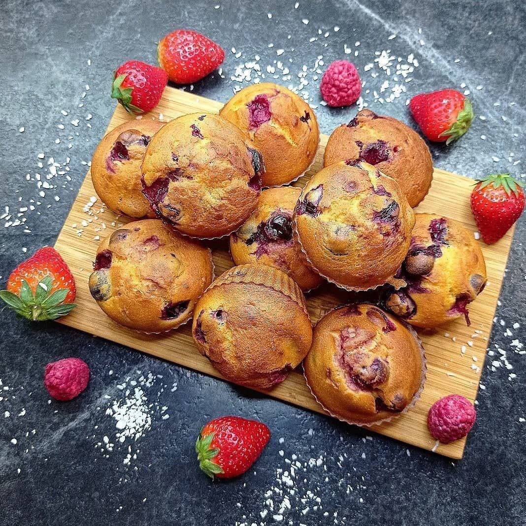 ПП кексы. На 100 гр к/б/ж/у 162/8,3/4,2/21,6 На 1 шт к/б/ж/у 62/3,2/1,6/8,3 Ингредиенты: -яйцо 2 шт (113 гр); -йогурт классический 170 гр; -мука 100 гр (цз); -разрыхлитель 5 гр; -ягоды 100 гр (клюква); -подсластитель по вкусу. Готовим: 1. Яйца смешиваем с йогуртом. 2. Добавляем муку, разрыхлитель и подсластитель. 3. Далее кладëм ягоды и аккуратно перемешиваем. 4. Распределяем по формам и выпекаем при 180-200 гр 25-30 мин (ориентируйтесь по своей духовке). Перед подачей остужаем. Приятного аппетита!