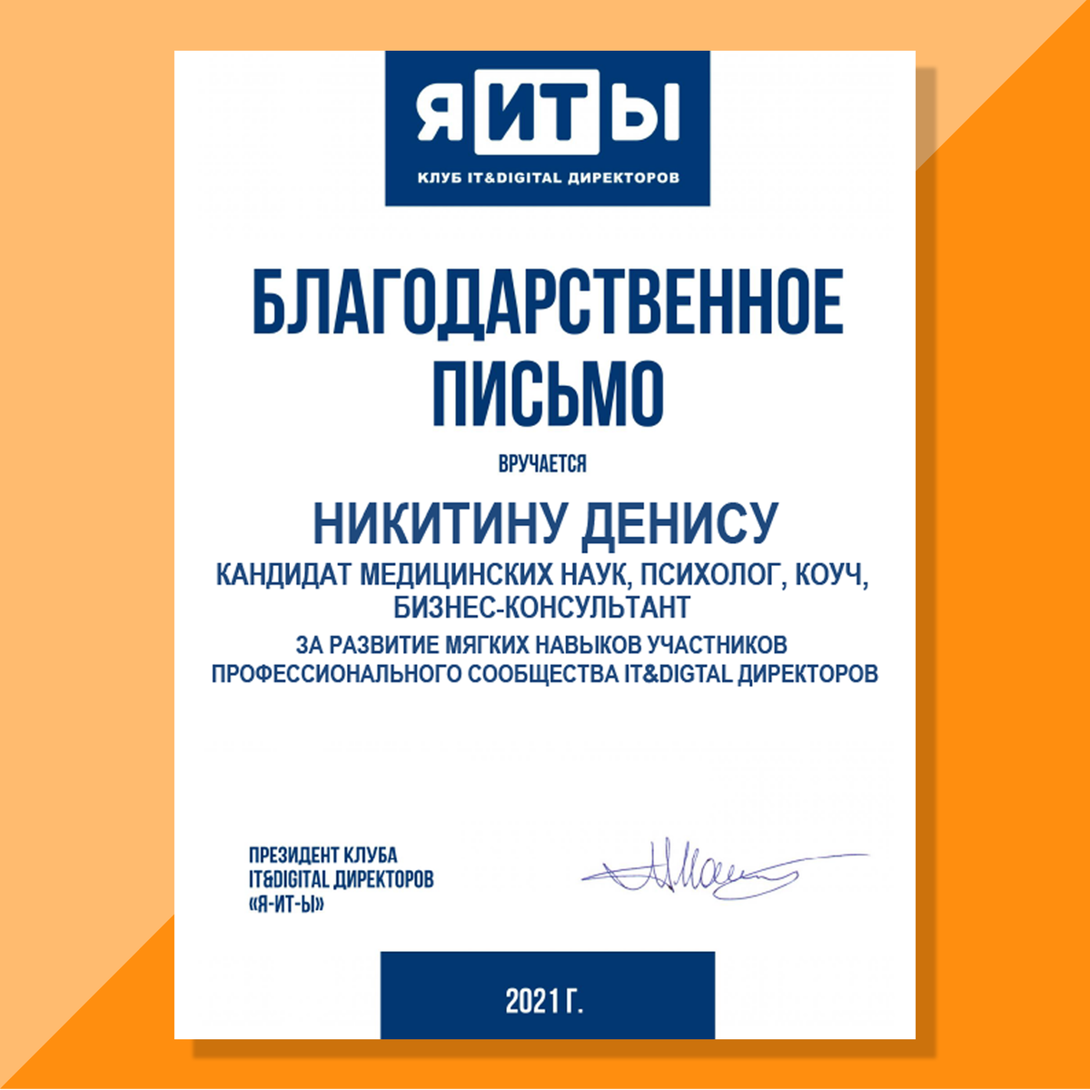 Письмо с благодарностью. Знаете, что за ним стоит? Клуб CIO и CDO, суровые айтишные руководители. Многие думают, что это люди-цифры, в которых нет ни одной эмоции. Зачем им профессиональный психолог и коуч?