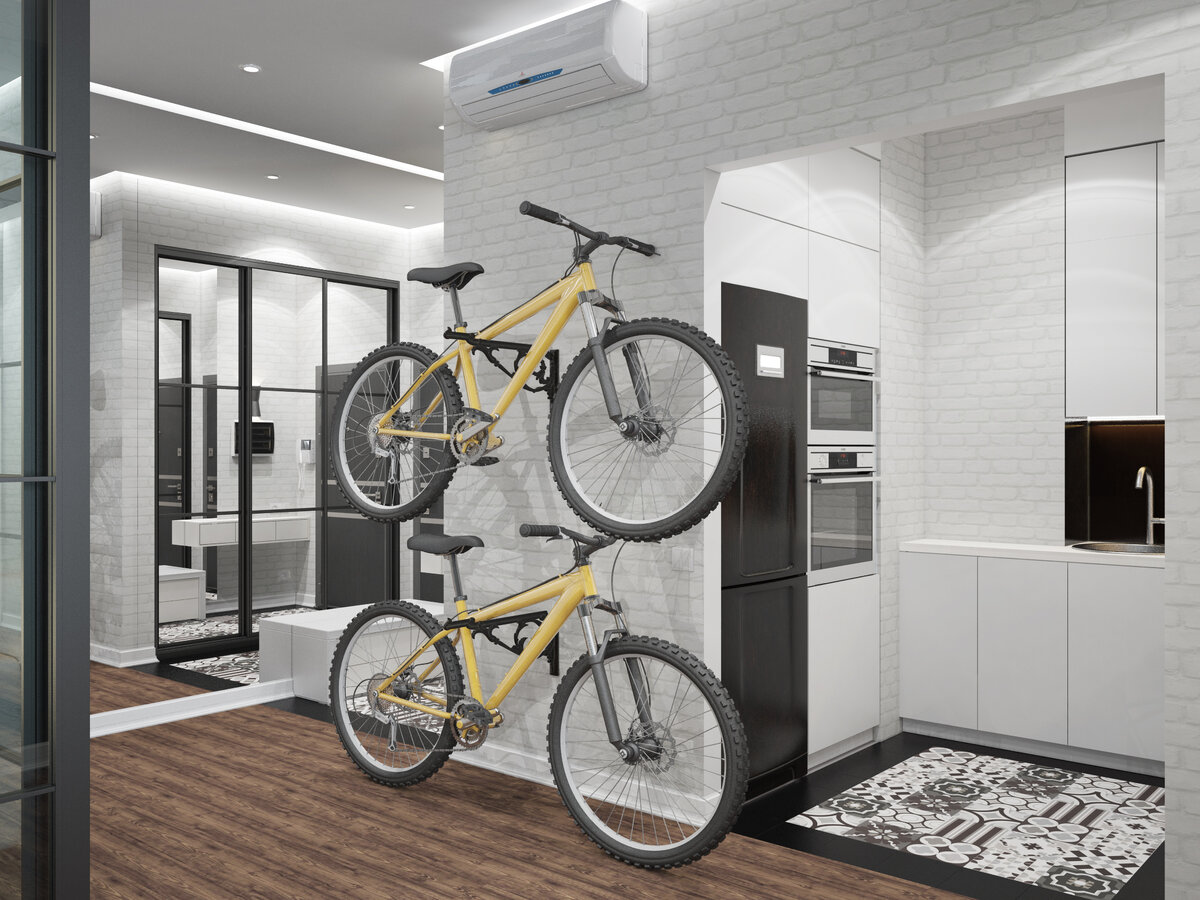 Квартира, в которой мало дверей, но много стекла. Если вы любите нестандартные решения для интерьера, вам она понравится. А у остальных, возможно, вызовет вопросы. «Интересности» начинаются прямо в прихожей, в которой одна из стен сделана зеркальной. Поворачивая налево, вы попадаете в кухню, выполненную в духе минимализма – лаконичные шкафы, гладкие поверхности, из декора – только броская керамическая плитка на полу. Во главе угла – удобство и функциональность. Доминанта гостиной – красный диван. При этом часть пространства отгорожена стеклянной перегородкой, и внутри сделан рабочий кабинет. Между гостиной и кухней дверей нет. Из гостиной можно перейти в спальню мамы – это ее личное пространство. Напротив прихожей находятся санузлы, а дальше по коридору зеркальные шкафы, визуально расширяющие пространство, и вход в комнату сына-подростка, где располагается его кровать и место для учебы. Кстати, шкафы в обоих личных помещениях также зеркальные, что зрительно делает их просторнее. В инте