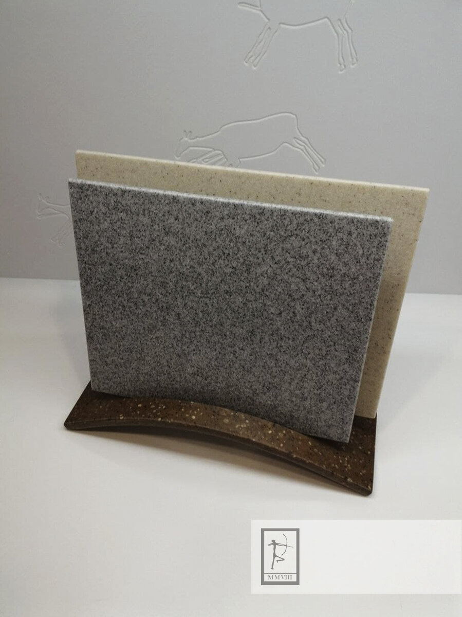Приветствую, дорогие друзья! Мы занимаемся изготовлением столешниц из акрилового камня уже 13 лет. На производстве за это время собралось огромное количество остатков камня. Не пропадать же добру, подумали мы и решили изготовить полезные вещи. Сегодня делимся одним из них - разделочная доска на подставке из искусственного акрилового камня. Подставку изготовили с помощью термоформинга. Не забудьте нас поддержать. Ставьте 👍 Подписывайтесь на канал Смотрите фото как это было. Напилили необходимое количество и размер заготовок. Фрезеровка деталей. Делаем отверстия в будущей подставке. Шлифовка заготовок. Шлифовка происходит в несколько этапов. Ставьте 👍 Подписывайтесь на канал Мы в Instagram и в VK