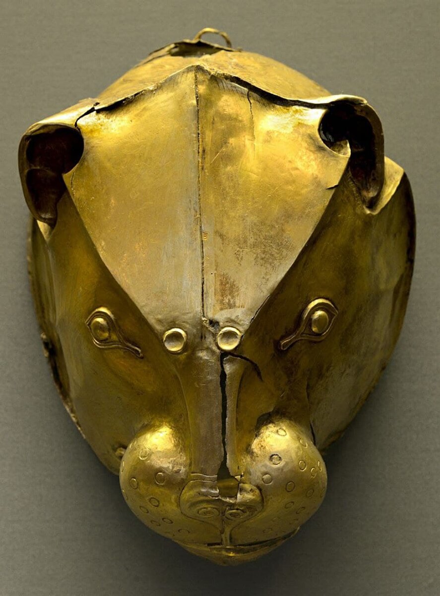 Ритон в виде головы льва. Золото. Микены. 1550—1500 гг. до н. э. Национальный археологический музей. Афины.