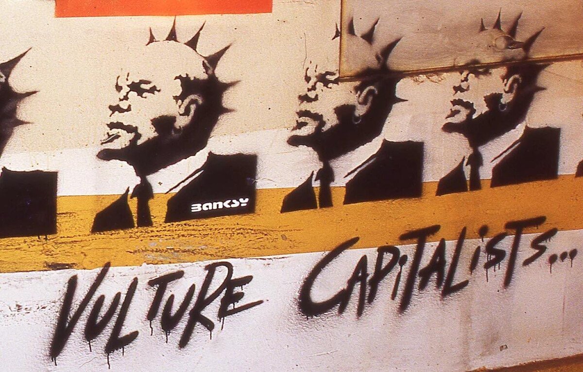 Фото: Getty Images (граффити Бэнкси «Стервятники капиталисты…», гараж посольства Швейцарии в Великобритании, Лондон, 2001)