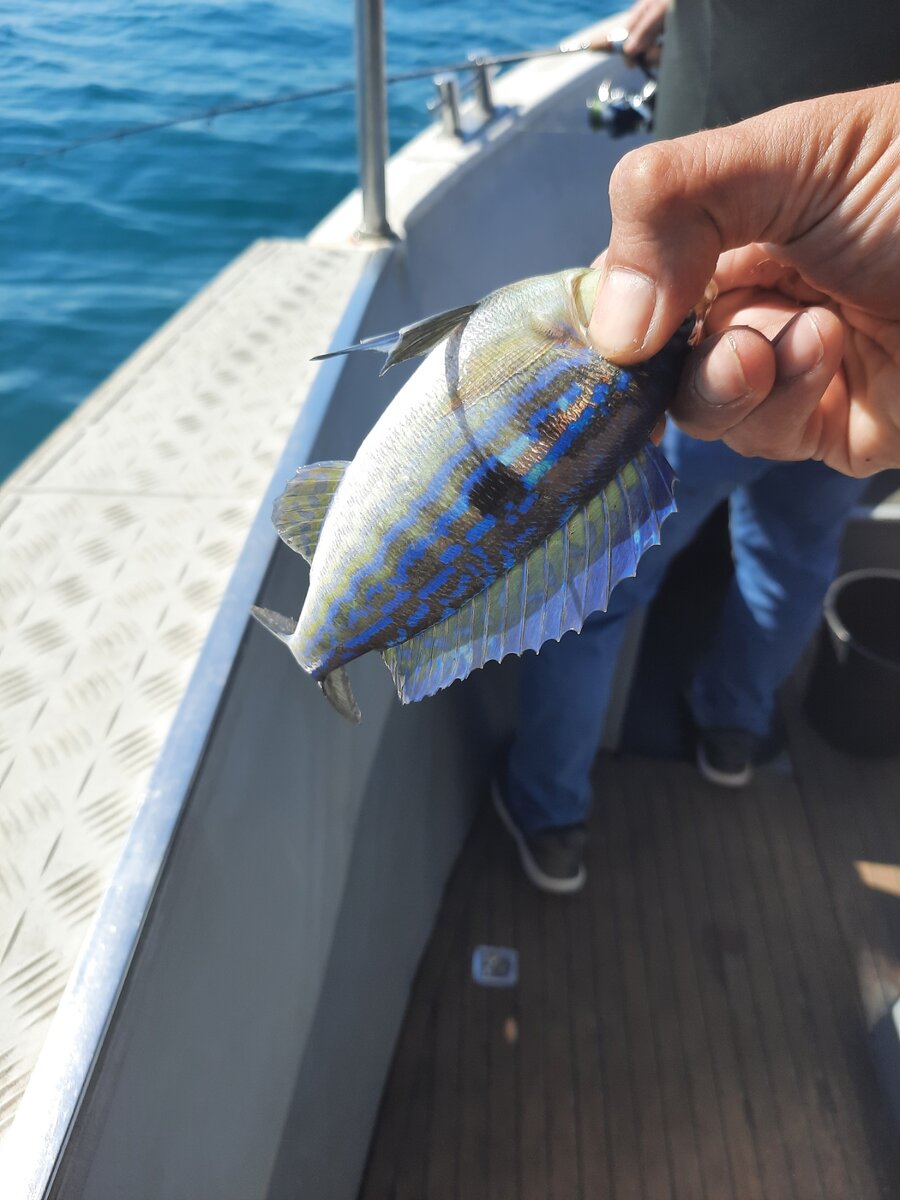 Не прошло и двух лет, как мы выбрались на морскую рыбалку. Ранее у нас уже были попытки свершить задуманное, но погода портила все карты. Сегодня же выдался просто замечательный день. Ветра не было, а море было спокойным. Прибыли к 8 утра на один из причалов в районе бухты Омега. Капитан с помощником уже ждали нас. Выдвинулись в путь. Путь до места назначения - Казачей бухты - занял около 15 минут. Проплывая увидели стаю дельфинов. Почему-то именно в этом момент я почувствовала себя невероятно счастливой. Море, дельфины, рыбалка. Что может быть лучше?! Планировали рыбачить около 3-х часов, но это дело так затягивает, что вышло все 4🤣 Ловили на креветку. Главный действующий герой - морской окунь. Ловить легко. Только забрасываешь, чувствуешь поклевку, подсекаешь и готово. Это не рыбалка с берега. Хотя наш родственник, который до этого ни разу не рыбачил в море, испытывал в самом начале некоторые трудности, но втянулся. Помощник капитана рыбачил вместе с нами и делился некоторыми секре
