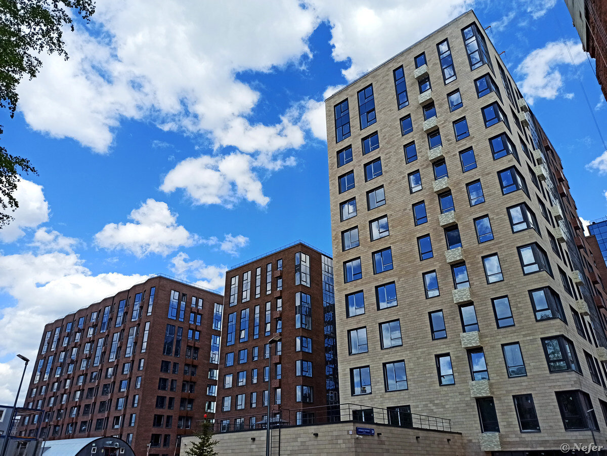 Не ожидала, что архитекторы спроектировали для себя настолько унылый квартал. Походила, погуляла, разочаровалась. Новые современные дома, но как-то слишком строго, без изюминки. Просто здания с окнами в разных оттенках коричневого. Официальная концепция звучит так: бизнес-класс, стильная авторская архитектура, престижная историческая локации на берегу реки Яузы.