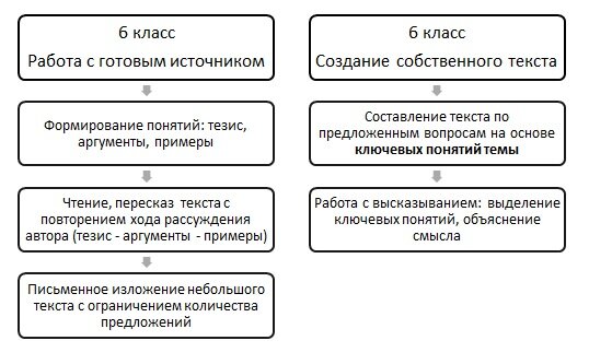 Все учителя обществознания понимают, что многие задания итоговой аттестации, как ОГЭ, так и ЕГЭ, базируются на умении логично и связно излагать свои мысли. Многие методисты отмечают, что без умения пересказывать, строить устный ответ на вопрос, дискутировать не будет стройной письменной речи. Есть два подхода, которые так или иначе ведут к умению писать связный текст. Я опишу их оба, но сразу оговорюсь, что являюсь сторонницей первого, который предполагает сначала работу с готовым текстом, но так как учащихся ждет ВПР, а в нем, как вы знаете, есть задания, связанные с написанием текста, то нужно работать и в этом направлении. Так, в 6 классе формирование умения начинается с чтения и пересказа авторского текста, возможно, текста учебника. Учащиеся должны увидеть (с помощью учителя на данном этапе) тезис - аргументы - примеры, при этом, они уже должны иметь представление о различиях данный понятий. Это нужно для того, чтобы школьники увидели ход рассуждений автора, логику построени