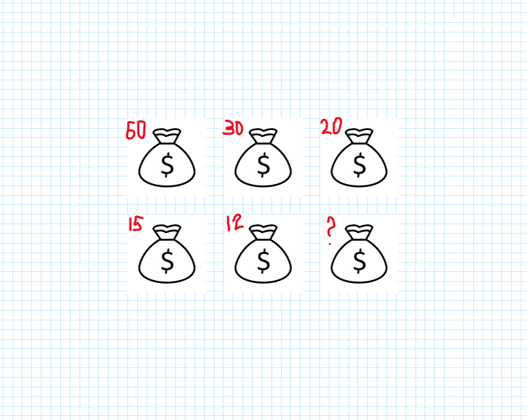 Здравствуйте, дорогие читатели. Предлагаю вашему вниманию интересную задачку на продолжение последовательности. Задача. У купца есть 6 мешков с монетами. Во всех мешках разное количество монет. В первом мешке - 60 монет, во втором - 30, в третьем - 20, в четвертом - 15, в пятом - 12. Догадайтесь, сколько монет было у купца в шестом мешке? У любой задачи на продолжение последовательности, обычно, существует несколько решений. Эта задача, наверное, не будет исключением. Поэтому, я приведу свое решение и распишу ту закономерность, которую заметила я. А если у Вас появятся более интересные варианты, то обязательно излагайте их в комментариях. Решение. Я заметила такую закономерность: все эти числа являются делителями числа 60. Причем, частные от деления, образуют тривиальную последовательность: В таком случае, последовательность продолжается очень легко: нужно просто найти число, при делении шестидесяти на которое, получается шесть: Получается, что в шестом мешке находится 10 монет. Такое