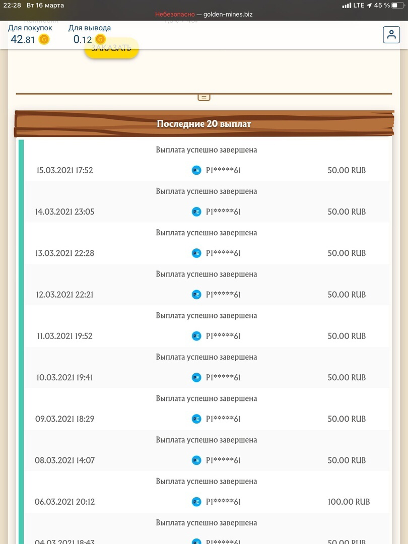 Пассивный заработок в игре Golden Mines. первое время нужно просто заходить и выполнять ежедневные клики… Регистрируемся, переходим в задания, выполняем их. Вам дают награду, гномов и золото. Гномы начинают работать и приносить руду, которую вы перерабатываете и зарабатываете реальные деньги. Нужно хотя бы раз в месяц заходить, перемещать руду на склад. Чем больше гномов тем больше руды. Обзоров в интернете на эту игру много. Ссылка на игру: тут Игра начала работать еще в 2014 году и на данный момент в ней зарегистрировано более 1 миллиона участников.