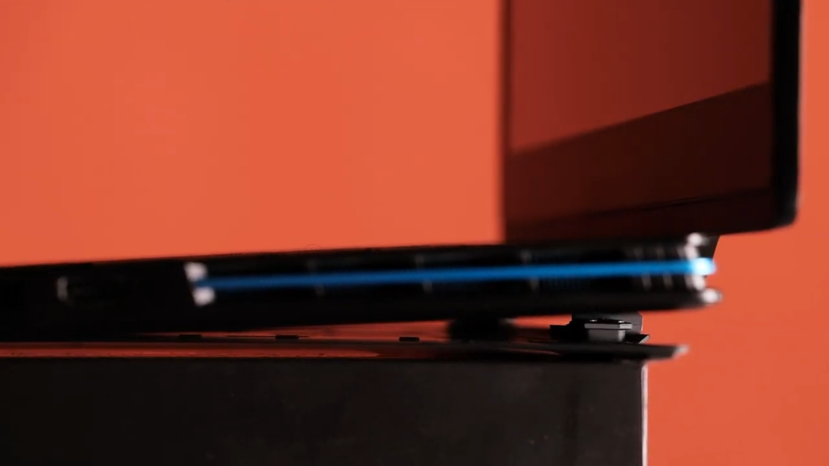 Далее у нас интересный экземпляр мощного игрового ноутбука с необычным корпусом. Смотрите, когда я его открываю, то нижняя часть приподнимается.