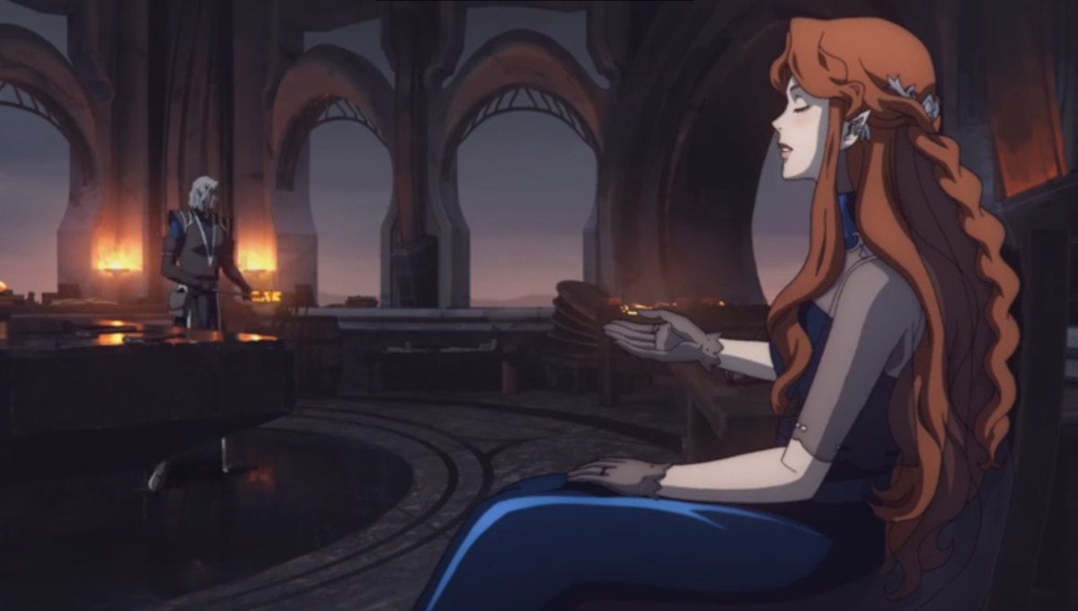 Но при этом сюжет очень хорошо прописан и очень много персонажей, которые являются не однозначными по характеру. Так, например, в первом сезоне будет миленькая девчонка, которой к четвертому сезону все надоест, и один из персонажей очень сильно удивится, что она начнет выражаться. Или вампирши, которых я представила на скриншотах, которые хотели завоевать земли, но уже устали от войны и понимают, что они устроили бойню, я не буду, спойлерить предпримут ли они действия, чтобы остановить безумие или продолжат плыть по течению... Например этот блондинчик в предыдущем сезоне, ненавидел и боялся эту рыженькую дипломатку, а теперь, хоть он и является ее "игрушкой", будет с ней общаться на равных и даже по