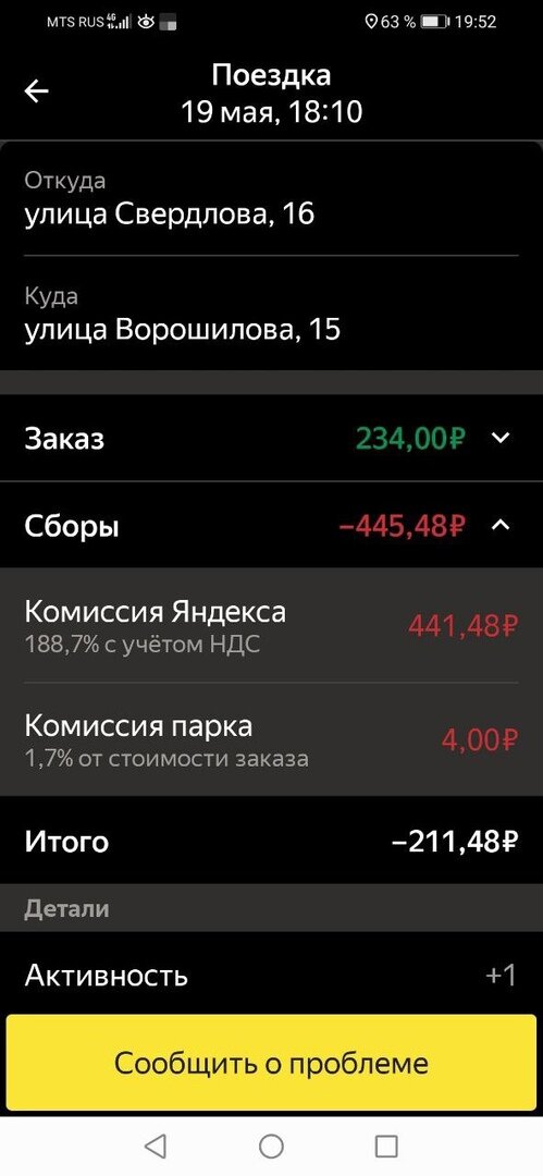 Скрин не мой, водитель выполнил заказ по яндекс такси-комиссия яндекса почти 200% Баг программы или яндекс просто списывает такой процент в надежде что кто то не заметит?