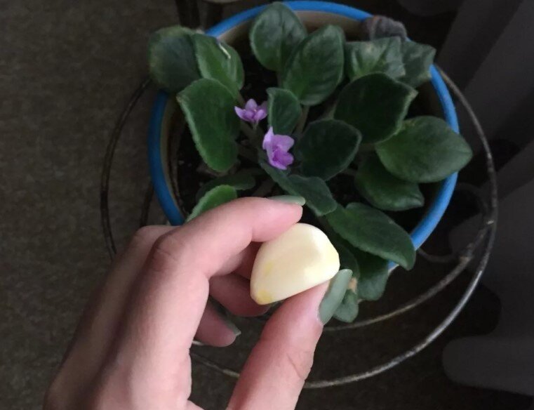 Кладем зубчики чеснока в горшки с комнатными растениями, для чего