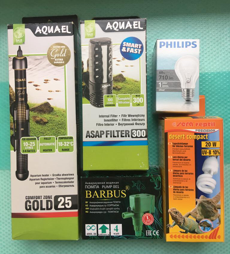 Общая информация об оборудование в аквариуме. Фильтр, обогреватель и лампы для берега.