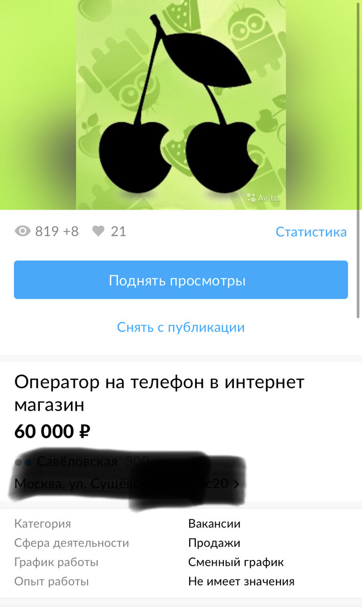 В итоге в начале мая я выложила объявление о поиске оператора в интернет-магазин на сайте Авито.