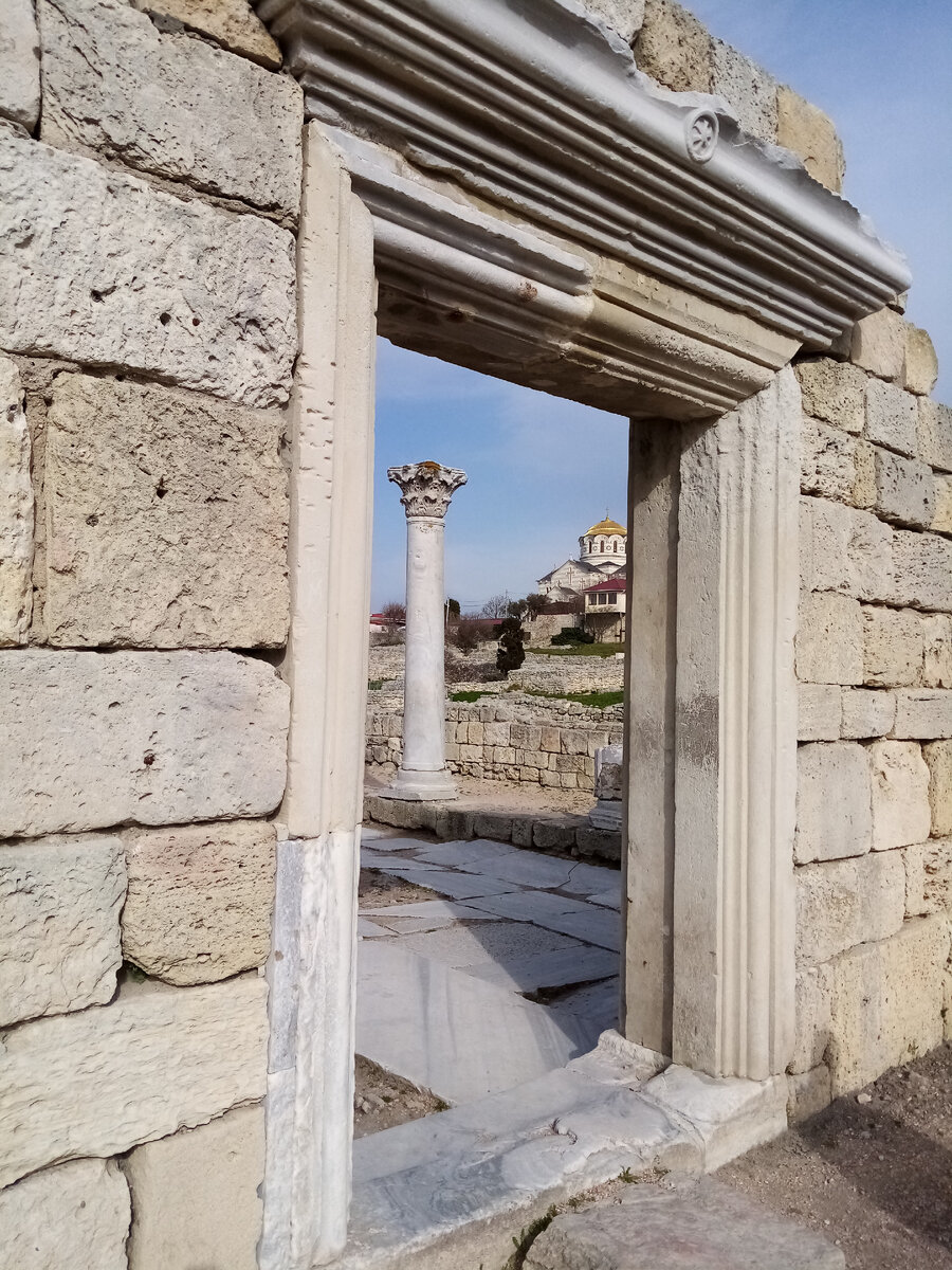 Вот, например Херсонес Таврический. Тут можно увидеть все. И синие цветы на улице древнего города, по легенде именно по этим цветам определяли не живет ли в доме феи. Если они скрывали траву синим ковром, значит, рядом поселился кто-то из малого народца. Военные корабли стоят в бухте, замер Туманный колокол, раскинулся древний амфитеатр, где-то тихо журчит вода фонтана, ветер точит мраморные колонны, поспорив, свалит или нет. И только кошки ходят по порогам из времени во время и не замечают, как носятся и зовут их громко крича местные кото-дамы.