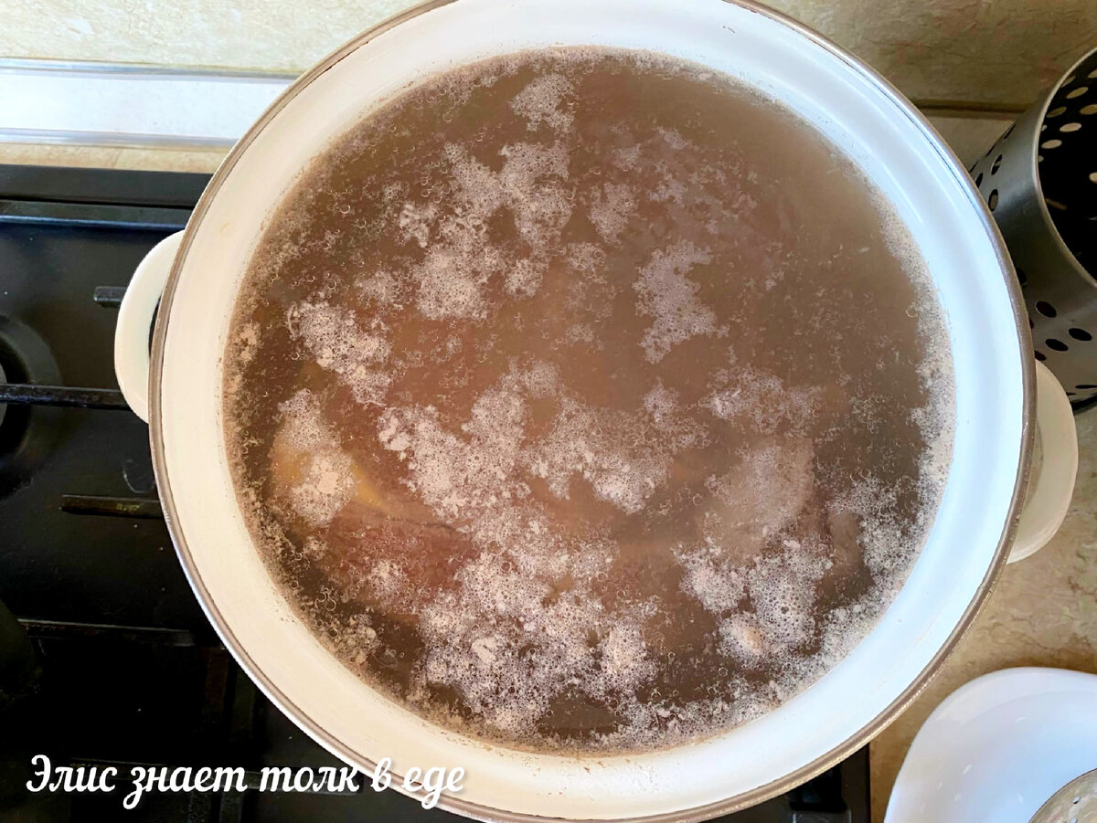 Мы не часто готовим этот суп, потому что он уж слишком простой, но иногда его просто хочется, ведь он очень вкусный. Что ещё хорошо в нем, так это то, что он ещё и достаточно бюджетный, поэтому он - отличный вариант, когда нужно ещё подождать до зарплаты. Итак, для начала, как всегда надо сварить бульон. У нас была в морозилке говядина на суп заготовленная (тонкий край), но, в принципе, этот суп можно сварить и на курице, тоже получится вкусно. Кладем мясо в кастрюлю и заливаем его холодной водой, доводим до кипения. Начнет образовываться пенка. Её необходимо снять, чтобы бульон был прозрачный. После закипания солим бульон по вкусу, можно также добавить в бульон целую морковину, стебли сельдерея или петрушки, но это не обязательно. Варим бульон в течении 1,5 - 2 часов, чтобы мясо стало мягким. Если варите на курице, то и сорока минут хватит. Пока варится бульон подготовим картофель. Очищаем его и нарезаем небольшими кубиками или брусочками. Когда бульон сварится, вынимаем мясо и ост